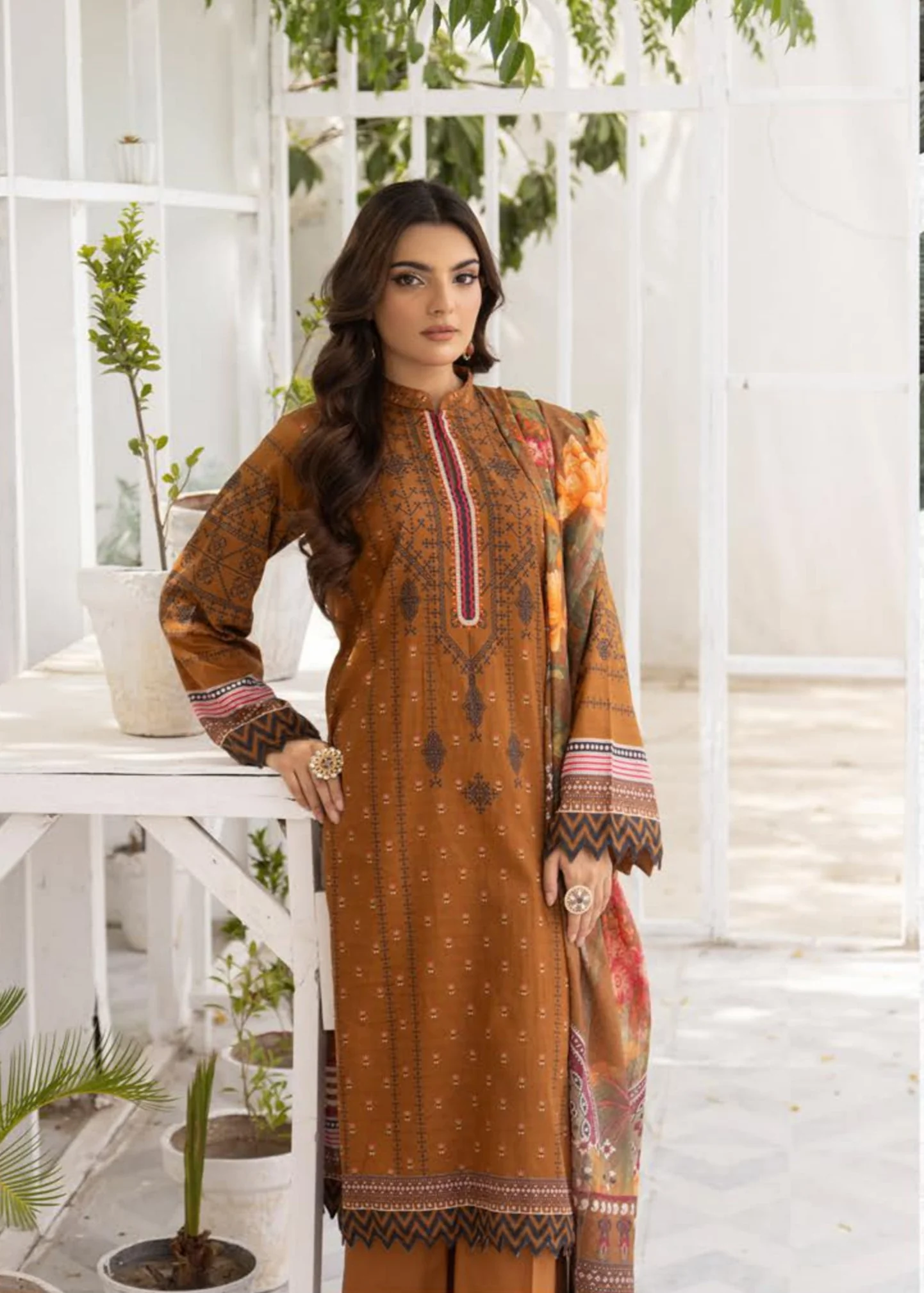 Dupatta : Digital Printed Lawn Slub with golden Zari Fancy Dupatta 2.5 Meter.